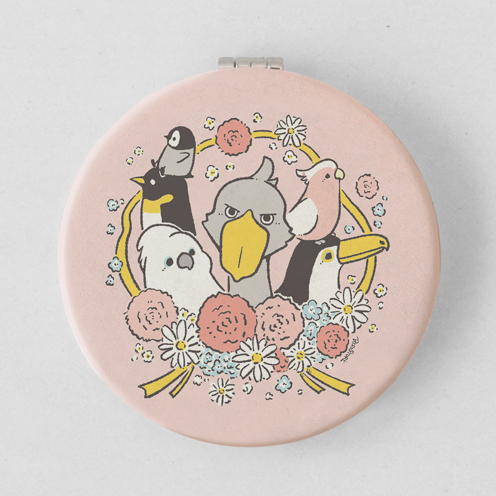 おもて面の鳥さんは、セキセイインコ・オカメインコ・コザクラインコ・文鳥・シマエナガさんの小さな鳥さんたち。