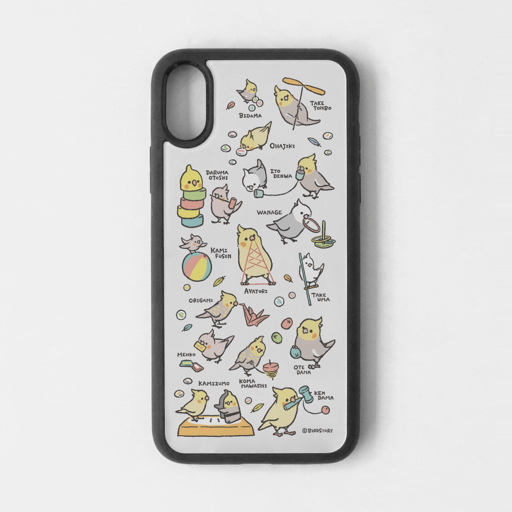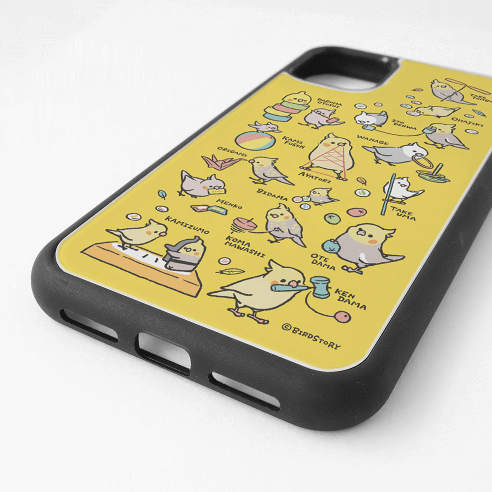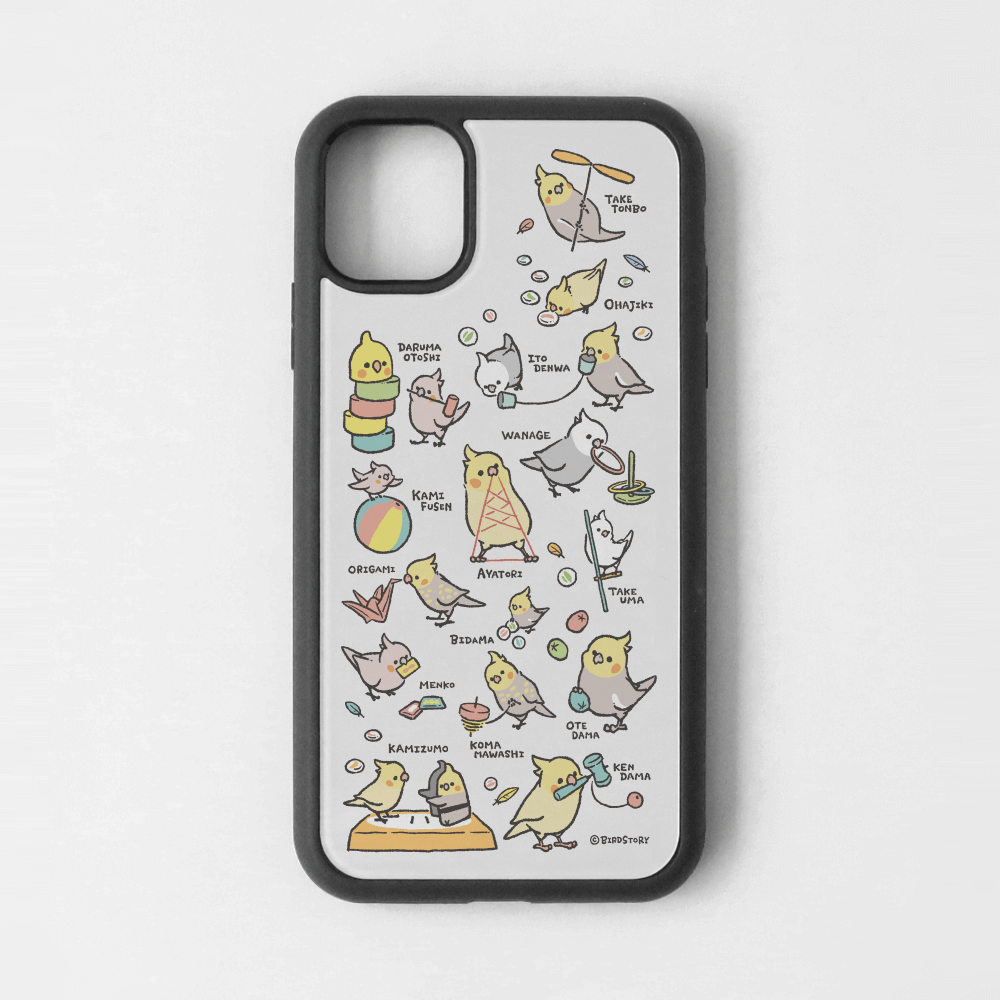 スマートフォンケース 昔の遊び 糸電話 紙相撲 お手玉 ビー玉 けん玉 オカメインコ