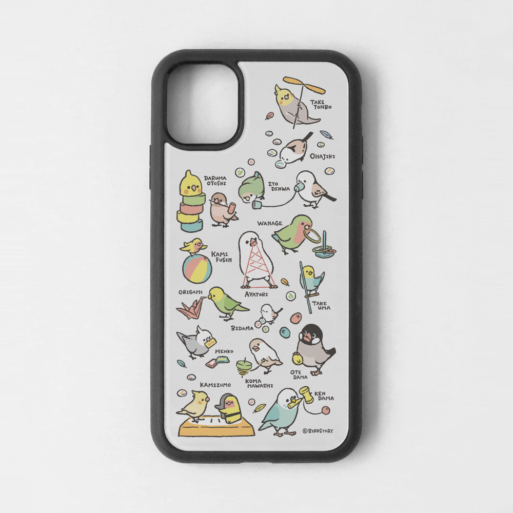 スマートフォンケース 昔の遊び 糸電話 紙相撲 お手玉 ビー玉 けん玉 いろいろな鳥