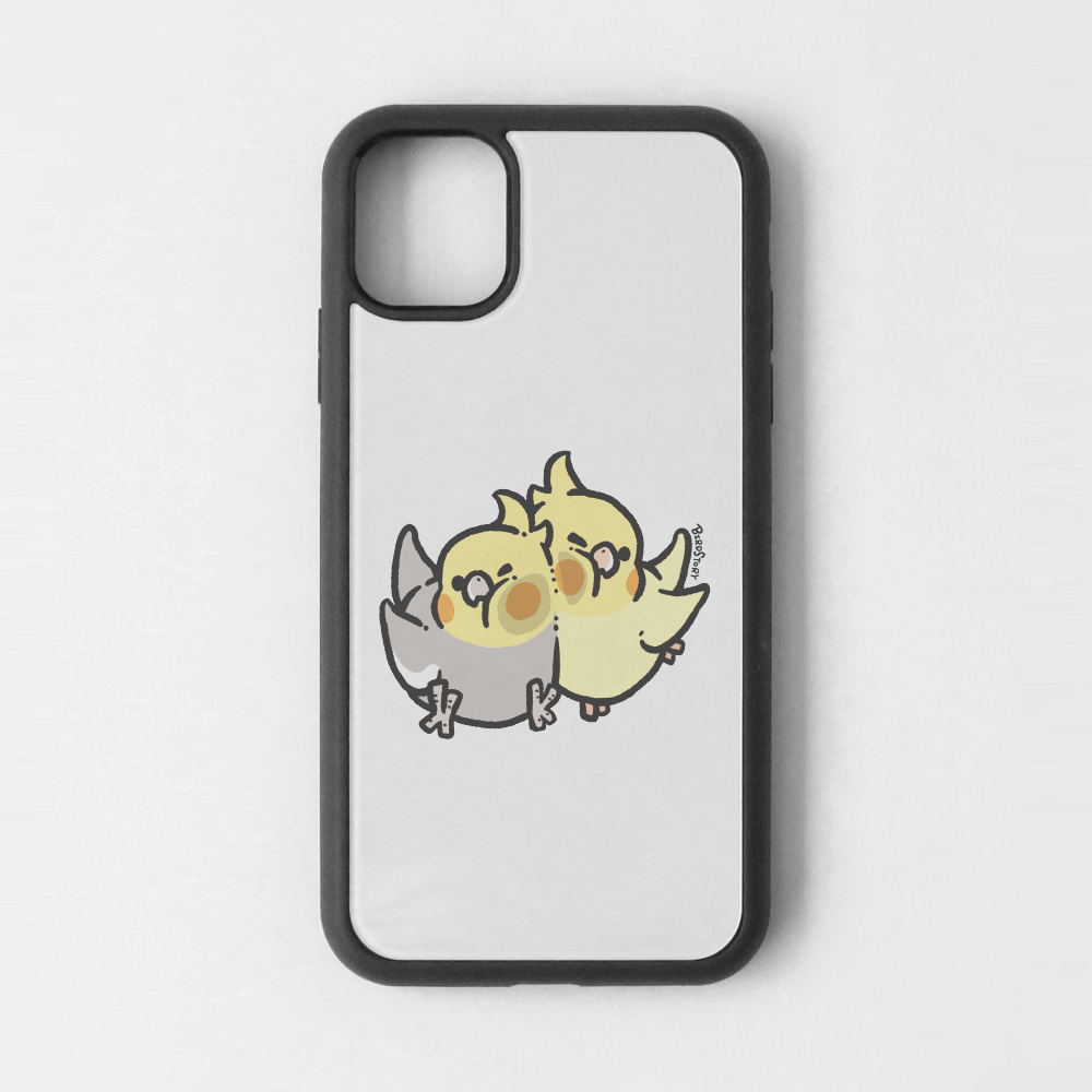 むぎゅっと愛らしい、ノーマルとルチノーのオカメインコさんを描きました。