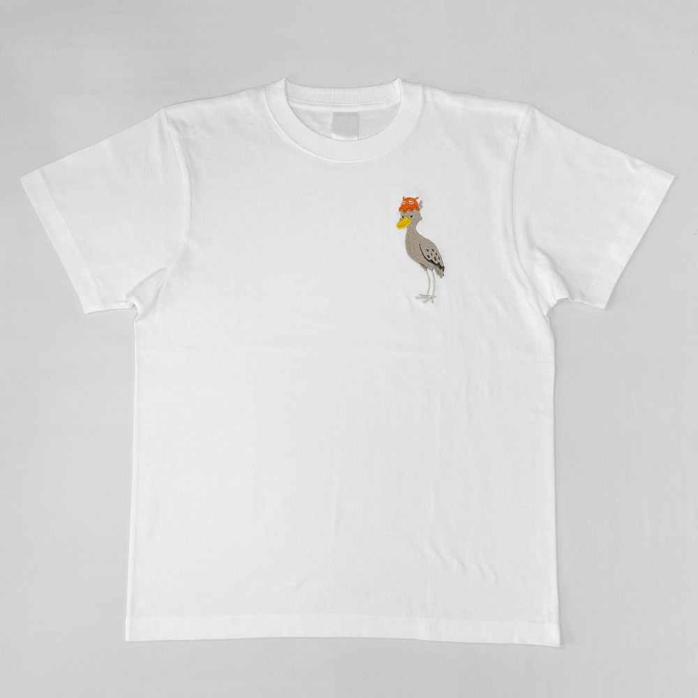 ハシビロコウとメンダコさんの刺繍が、ほどよく目を引く仕上がりです。