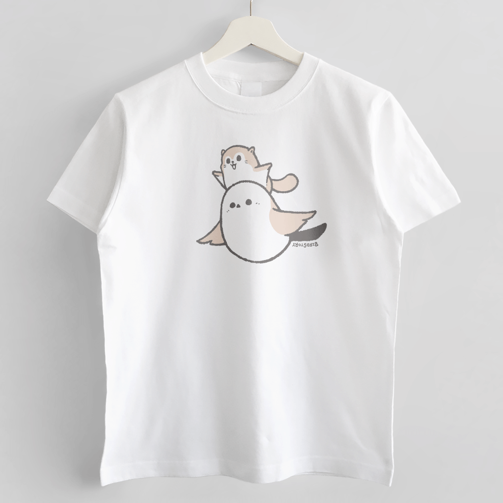 Tシャツ シマエナガとエゾモモンガ SHIMAMOMO とぶ シンプル
