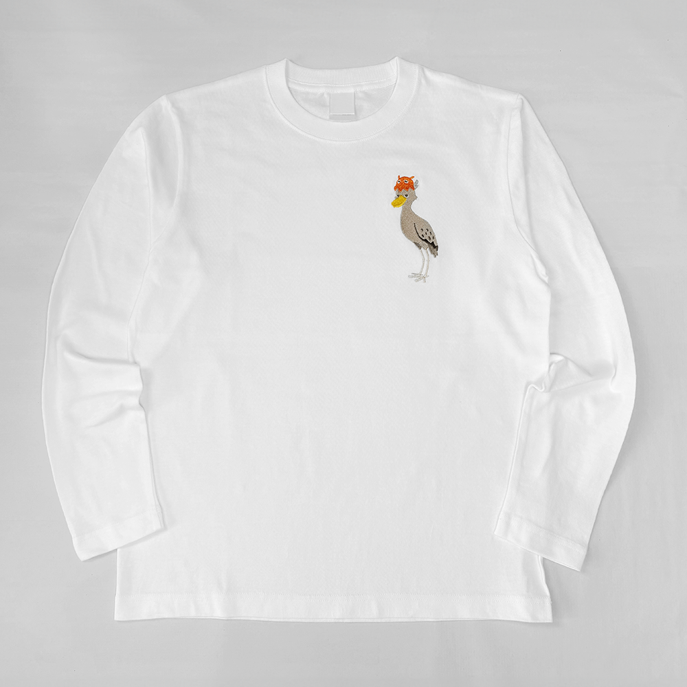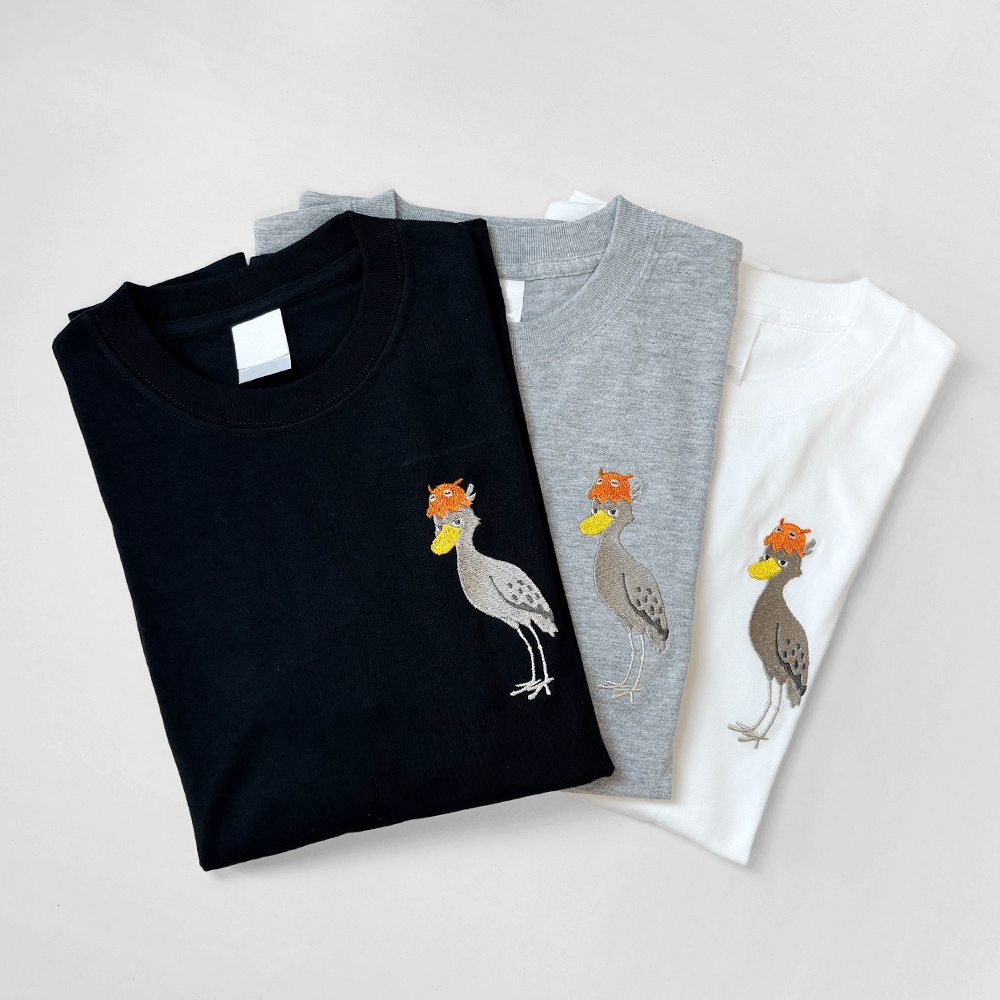 ハシビロコウとメンダコさんの刺繍が、ほどよく目を引く仕上がりです。