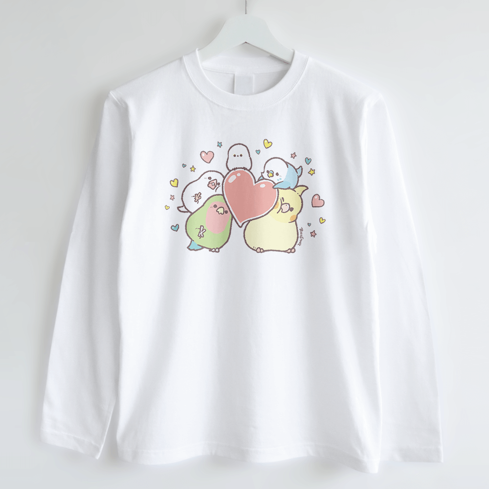セキセイインコ・オカメインコ・コザクラインコ・文鳥・シマエナガさんとハートを描きました。