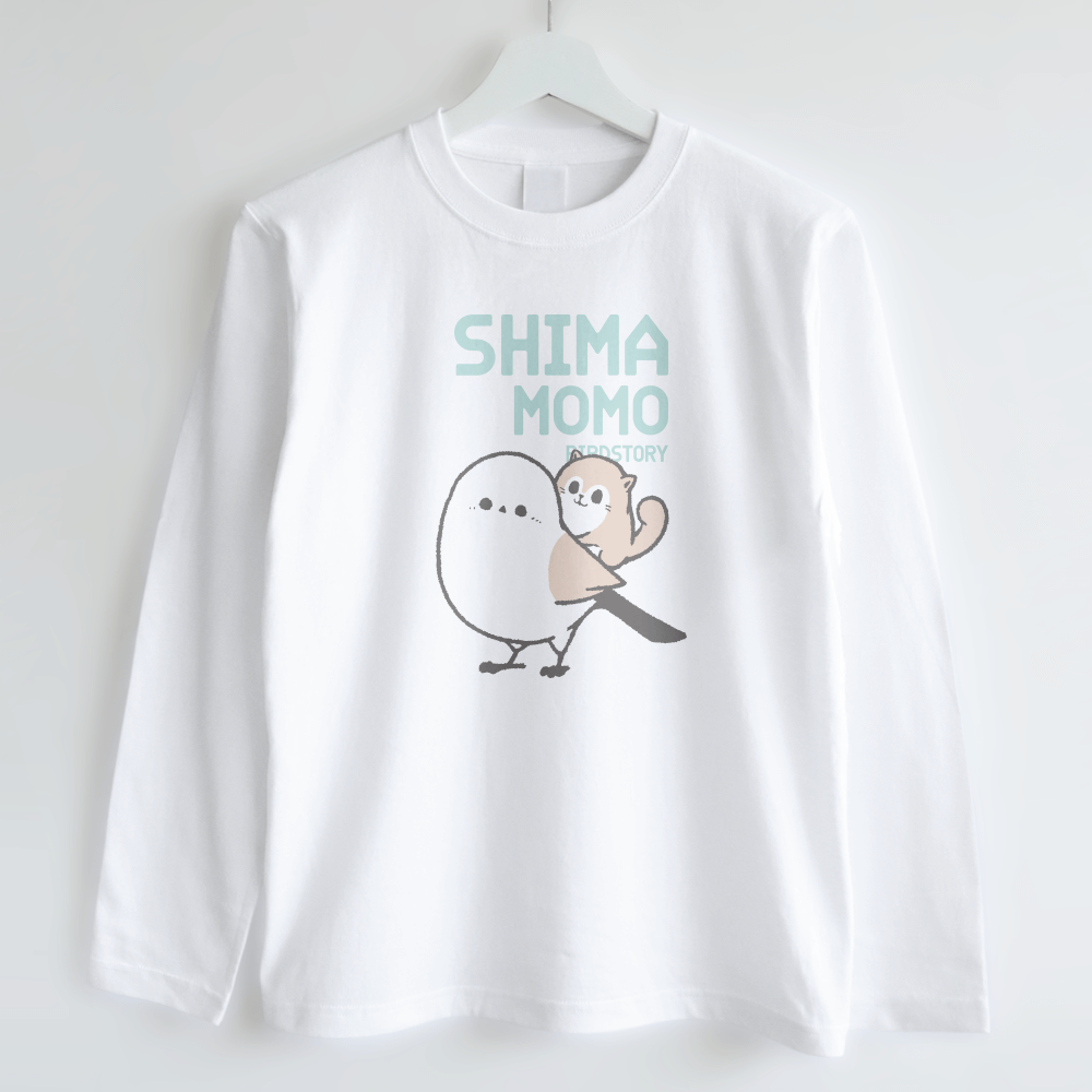 長袖Tシャツ シマエナガとエゾモモンガ略してシマモモ おんぶ