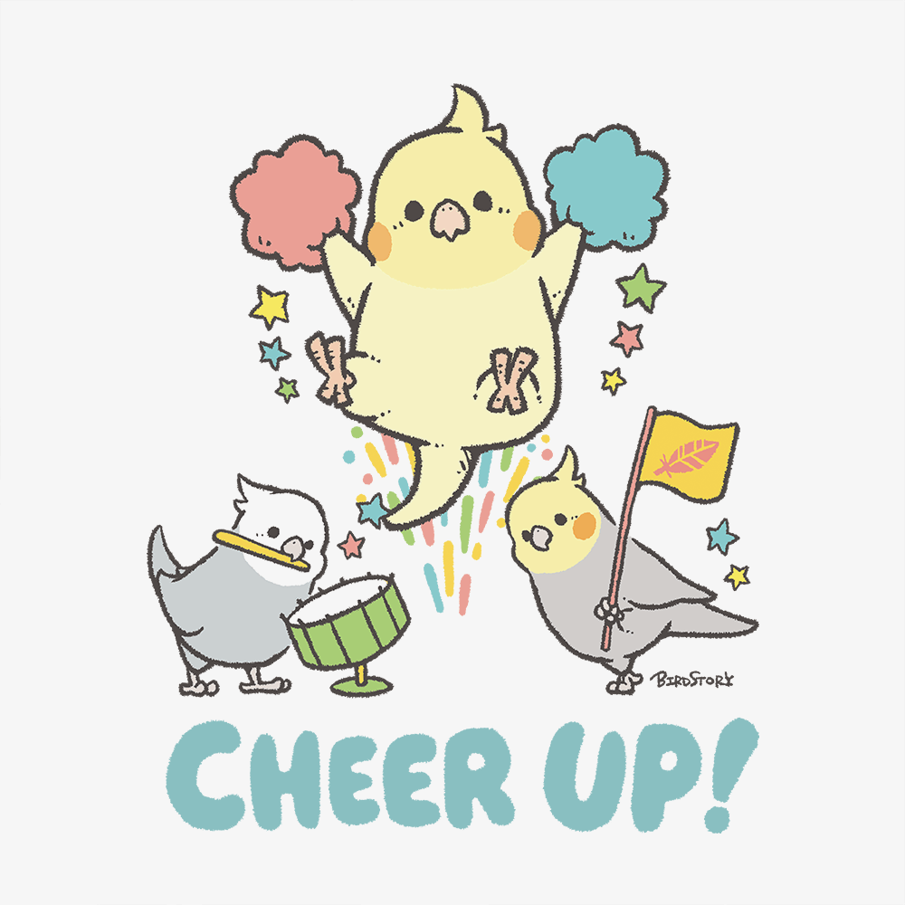小さな体で一生懸命にボンボンを振る、オカメインコさんの応援団。