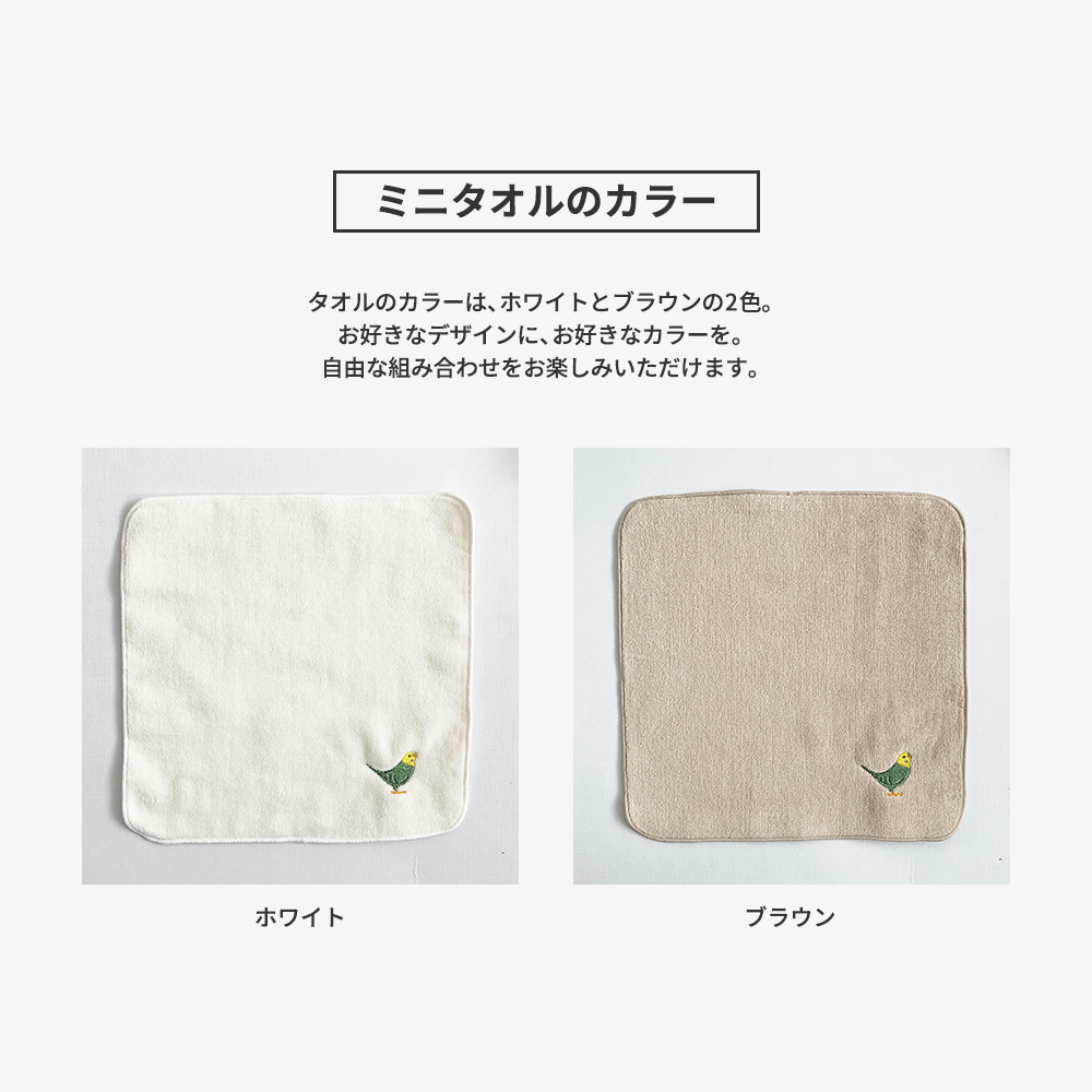 20×20cmで、日常使いにちょうどいいサイズのミニタオルです。