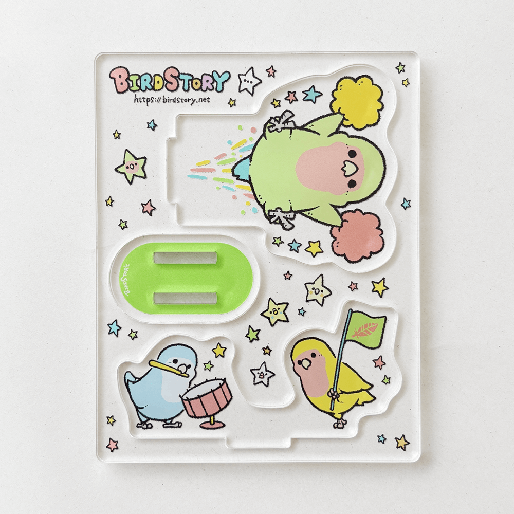 小さな体で一生懸命にボンボンを振る、コザクラインコさんの応援団。