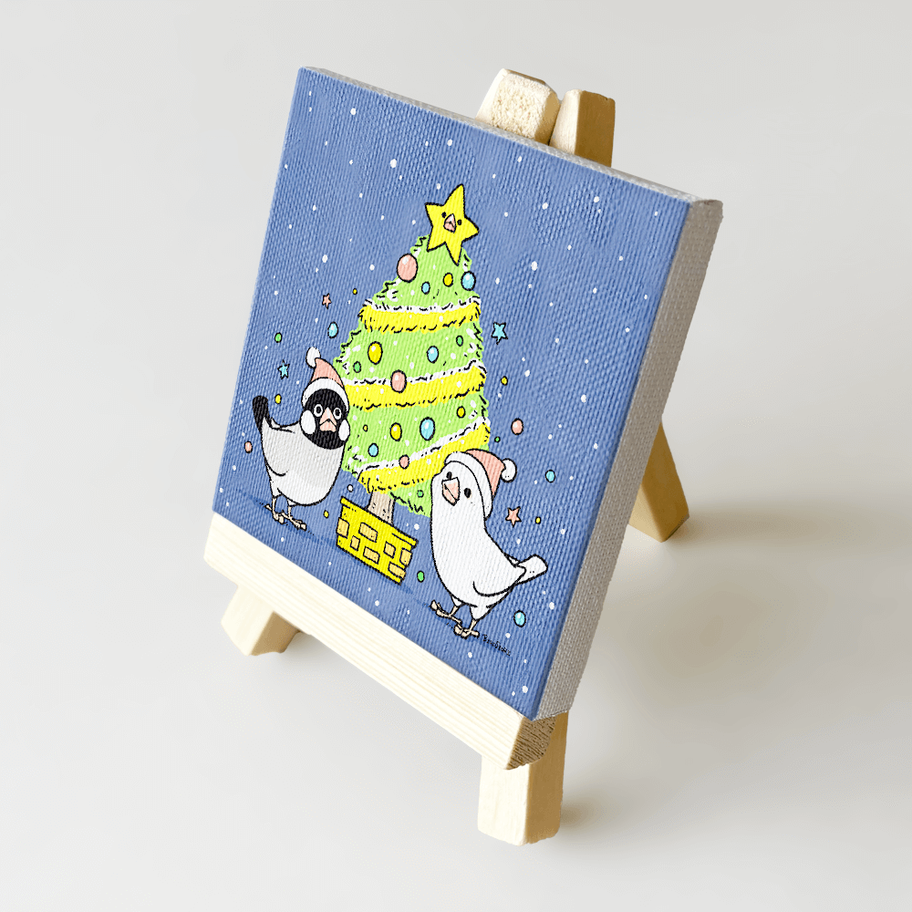 文鳥さんとクリスマスツリーを描きました。