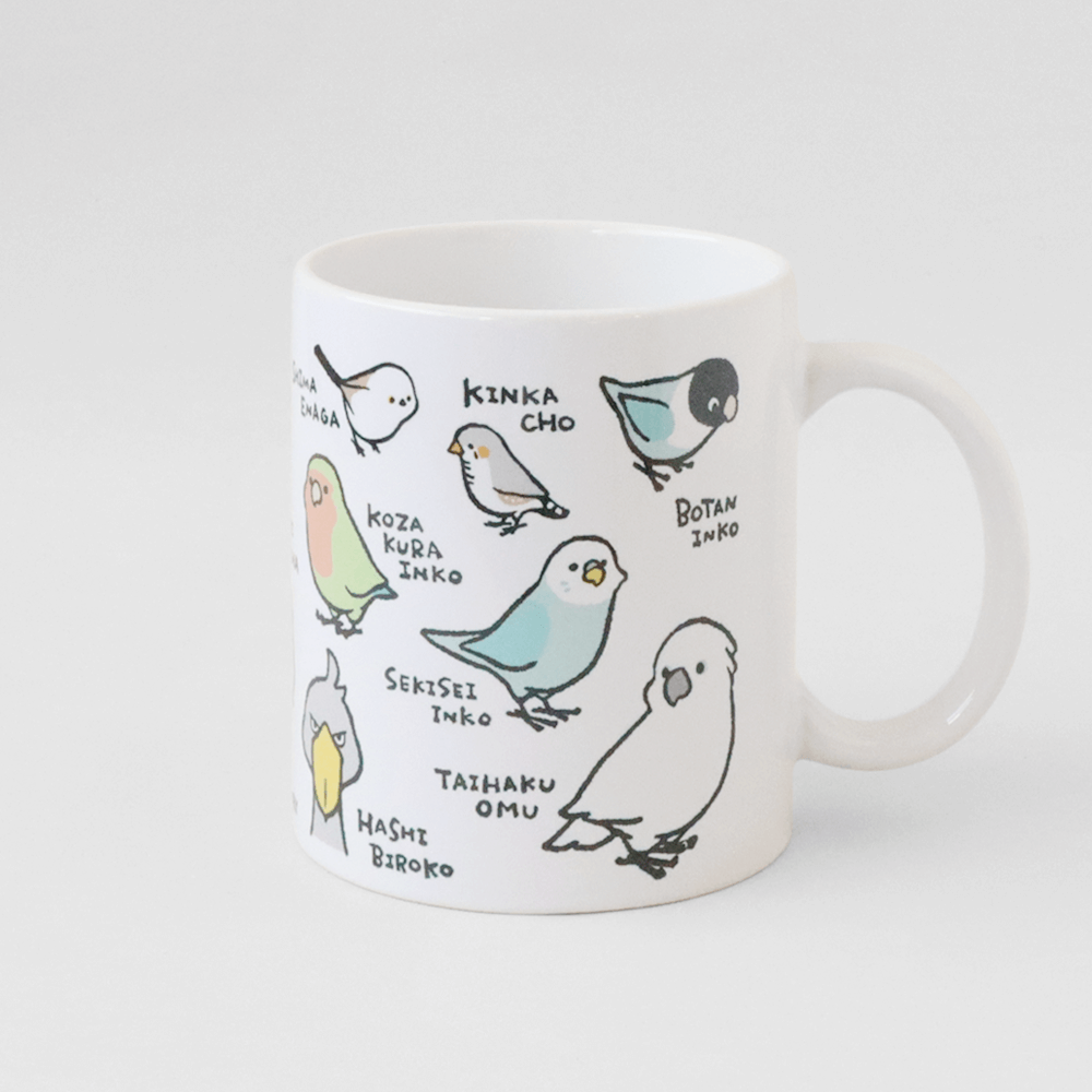 一周ぐるっと鳥さんデザインのマグカップです。